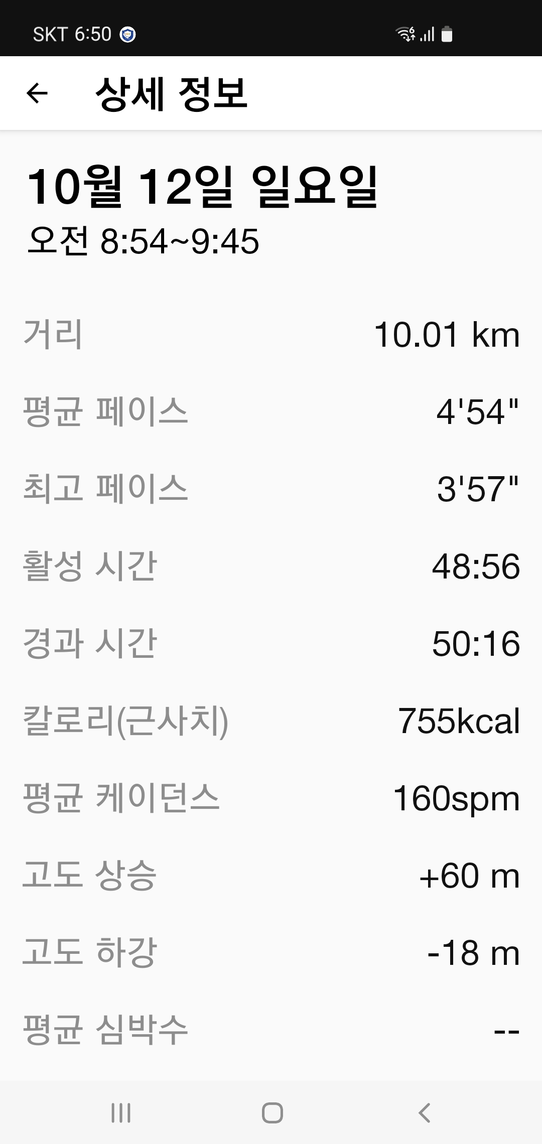 2025년 10월 12일 아침, 몸을 다시 일으켜 달리기로 했다.